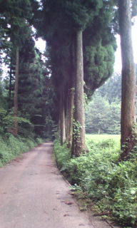 | 道を聞こうにも通行人がいないし、集落があっても誰も見えない。せめて道端で老人同士が立ち話でもしていてくれればと思った。あれこれと道を間違え、挙げ句の果て、三本松辺りから一旦、57号線に出る事にする。十六里木近辺はパスして次回、改めて調べ直して来ようと思った。小池野からヘキ谷への道に入ると豊後街道の表示がある。流石、熊本県!これから後戻りして大利には向かわずに波野へと向かう。途中には御茶屋跡だの十五里塚だのの説明板もあってありがたい。クルマも通らない細い杉並木の道を走っていると昔の旅人になったような感触を味わえる。 | |