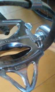 | ついでに先のミカシマペダル、これまでクイル型を使っていたためか、Qファクターが広いと感じる。ついつい、内側に足が自然と動いていく。内側に行くとストッパーのための出っ張りがある。春需が終わったらこの部分を削ってしまおうかと考えている。そうそう、ついでに言っておくと、クリップとストラップは前のものから移植した。クリップはアルミ製、これを使うとペダルが水平になってしまう。大きな蹴返しがあるにも関わらず反転させにくい。これまでスタート時、足元を見る事もなかったが、慣れていないせいか足元ばかり見ながらスタートしている。ここも早急に鉄のクリップと交換するつもりでいる。 | |