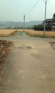 | 木倉の町を通り抜ける途中から昔の道に曲がる。農道みたいな所を通ると軍見坂に出る。この坂、登り始めから1kmくらいが一番きつい。自動車の修理工場がいくつかある辺りである。それさえ過ぎれば勾配は少し緩くなる。そこを坦々と上る。昔は少し違ったルートとも、元の道を拡張したとも聞くが、それにしても、徒歩や馬車を引いてならきつかっただろうと思う。多分、かってはどこかに水飲み場があったに違いない等と想像する。 | |