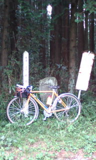 | 2つのルートの内、一つはどうも途中で切れている感じがした。これまで走っていると妙な勘が生じて、何となく分かるようになってきている。一つは川沿い、一つは山方向に向かう道、後者を選んだ。少しきつい坂だがインナーにして上っていく。上りつめた所で栗林、標識から幣立神宮が近い事が分かる。そこから218号線に突き当たる。横切るのだが、ここで、またもや、ちょっとぉ!である。確かにガードレールは上方向になっていて道らしきものがあるのだが、草むらである。国道側は刈ってあるのに・・・。 | |