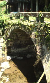 | 辺りは黄色い稲穂に真っ赤な彼岸花が咲き誇っている。ここに来ると“薩摩街道御籠据所跡”とかの表示や石の道標がある。そうか、ここは江戸に時代の道でもあったんだと気づく。集落には小さな石橋がいくつかあり、一つ、一つに説明板がついている。上部がコンクリートで覆われていたりするので、見落としそうになるが、逆に考えれば江戸時代の小さな石橋が今でも使われているのである。農産物や農作業の機械を積んだトラックが200年以上も前に作られた石橋を渡っている。住んでる人達には極、当たり前の景色なのだろうが、これはすごい事である。橋の下を覗いて見ると小さな魚が群れをなして泳いでいた。 |