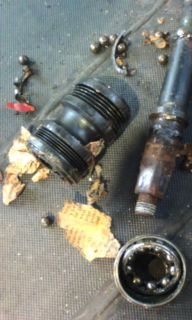| 分解作業をしていると、他にも見えてくるものがある。BBワンを外した時、何か紙片が出てきた。印刷物で雑誌の一部だと思われる。文字が書いてあるが、どうもスペイン語みたいだ。たまたま、その日、メキシコ系アメリカ人の英語教師の人が来たので見せてみるとそうだとの事、なぜこのようなものがシートチューブ(それもBB付近)に入っていたのだろう?ウォーターシースが入っているので、シャフトが水に濡れることはない。考えられる事は、どこかでBBを分解した際、グリス等を拭きとった残りかもしれない。海外ではよく拭いたりする場合、布ではなく、紙を使ったりする。内容は自動車の売りたし等の記事などであった。 |