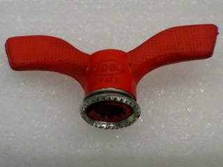 | 写真のものはスギノ製、アイドルという名で売られていた。たまたまスギノ(チェンホィルメーカーだが、結構、いろんなものを作っていた)製しか入っていなかったが、この他にもユーレーだのGB、コバだの数種類のウイングナットも持っていることを思い出した。アイドルも他に白色も所有していたはずである。 |